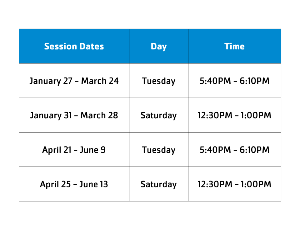 Safety Around Water will be offered throughout the year at the YMCA of Greenwich, offered once a week for 30 minutes on Tuesdays or Saturdays. Our 8-week session dates are listed in the table. Click the button below to register.